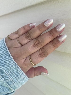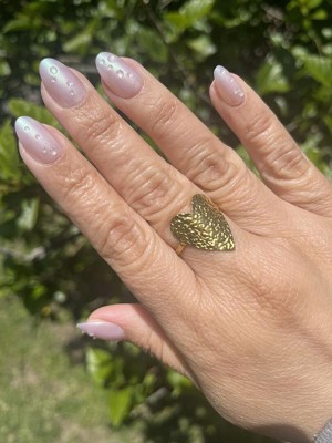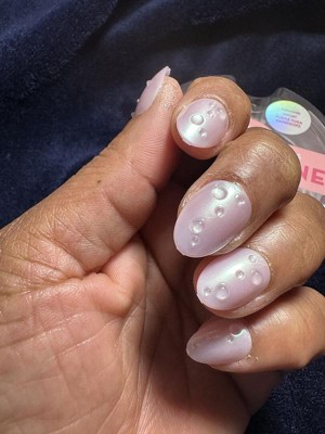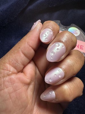 [This review was collected as part of a promotion.] Olive and June did everything right with this design. The shape and design are both chefs kiss. The fit was very comfortable and I enjoyed the length as well. I applied it using a moderate amount of glue, expecting a 10 day wear. I got exactly 10 days when I felt like my left middle right nail and left thumb was a little loose. I decided to remove the set then which took little effort after soaking. I really enjoyed the subtle rain drop design although I don’t typically gravitate towards three dimension nail art. This was subtle and really elegant. One minor note is that this nail shape and length works best on short nails. If there is too much or a free edge on the natural nails it may show at the sides. Overall I loved this set and think it may be my favorite. I would buy this shape and length again.