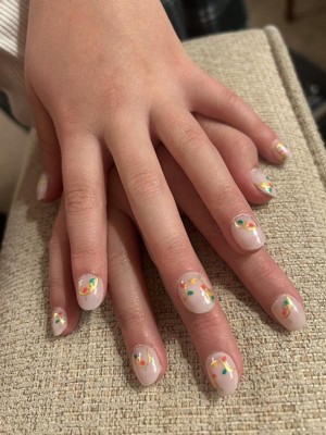 [This review was collected as part of a promotion.] My granddaughter and I highly recommend the Twinkle Lights extra short! They are a perfect length for an 8-year-old little girl. She loves her fancy nails, but they are an appropriate length allowing her to do all of her kid things! I showed her how to put on the first two, then she took over applying the remaining fingers and it was very successful "all by herself" making her feel like a big girl. Her pinky nail did pop off after a couple of days, but she just reapplied it with a new tab and she was good for the week. We really like the twinkle lights design. It is a fun holiday, but subtle enough and it goes with lots of things. These were a winner for us!