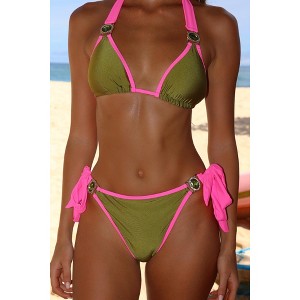 Moda Minx Contrast Cove 'Olive & Barbie' Tie Side Crystal Bikini Bottoms