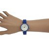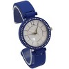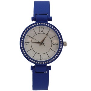 This is a pretty watch. It is a bracket style on cobalt blue. It is accented with white stones around the outside. The font for the numbers is very cool and the watch hands mimic that style. I am pleased with the overall look of the watch, but a couple things keep me from giving it a higher rating. The bracelet is not adjustable. It does have a spring to open it up. I've got a medium wrist and it fits me okay. If you have a small wrist I think this would fall down your arm. But my biggest complaint is that the back has fallen off every time I tried to wear it. Luckily I caught the clinking noise as it fell and found it, but I feel like it shouldn't be falling off.