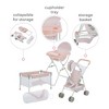 - Comfort-grip handle, smooth-riding wheels, and built-in storage basket on the stroller