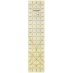 The Omnigrid 4" x 18" mini grid ruler is a versatile tool loaded with 1/16" precision markings for accurately cutting projects such as miniature quilts and Seminole patchwork. The patented double-sight lines show up on both light and dark fabrics and the laser cut edges help create a smooth, deep cut. It is best used with a rotary cutter or straight-edge blade.