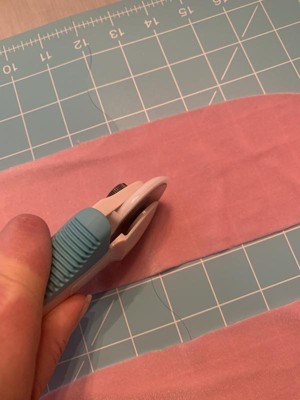 [This review was collected as part of a promotion.] I am in love with the quality of the rotary cutter. It cuts through fabric with ease and the grid helps line up my cuts precisely. The mat being able to fold makes it easy to store as well.