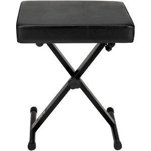 The KT7800 is a three-position X-style bench that is both affordable and perfect for fold-and-go use. Its all-purpose appeal make it a no-brainer for those looking to buy a basic bench for gigs, the studio or for home. Itslegs fold flat for shipping, black vinyl. 2 in. padded seat, 300 lb. capacity.
