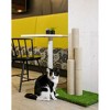 - Includes three (3) sisal-wrapped cat scratching posts and a turf mat base for indoor use. Four (4) leveling glides on the bottom of the base are included for additional stability.