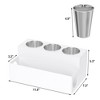 - PERFECT SIZE FOR YOUR VANITY - 11.8" wide x 7.3" deep x 5.3" tall. Each stainless steel cup is 3.5" wide and 4.9" deep. Perfect compact footprint for your bathroom vanity.