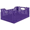 - STACKABLE - This folding crate is completely made from recycled material. The folding crate is stackable and handy for storing books, pantry items, bath supplies, desk supplies, groceries, linens, hobby materials, and much more.