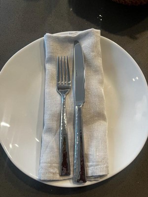 [This review was collected as part of a promotion.] Super nice looking set. Has the hammered handles that make it look elegant. It's super heavyweight. The weigh of the silverware is nice. It comes with enough silverware for 4 people.