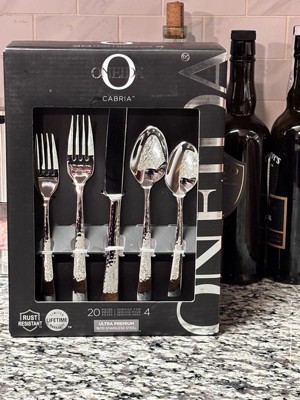 [This review was collected as part of a promotion.] The Oneida Cabria 20 Piece Fine Flatware Set is absolutely stunning. The pieces are shiny with subtle hammering to give them an artisanal appearance. The pieces are solid and have a nice heft to them. They are dishwasher safe and have held up beautifully over multiple washes. They are comfortable in the hand and make a delightful addition to your dining room table. I absolutely love this set!