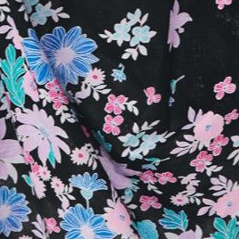 Embrace comfort and style with the beautiful prints and full sweeping silhouette of our Bib Front Lounger. Features a sweetheart neckline bib with three buttons in a coordinating pattern to match the hem..