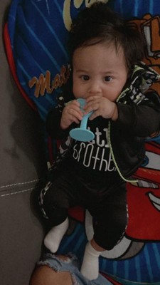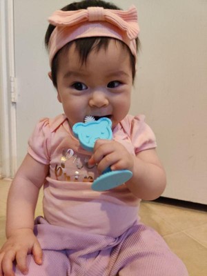 [This review was collected as part of a promotion.] My little one loved this! Starting to teeth and the bristles are so gentle but definitely helped provide the relief he was wanting. I also like that all around it’s the same material so if he wanted to nibble on the bears ear not a problem like other products that have the hard plastic and ends up hurting their gums with this product you will definitely not have that issue. Overall would definitely recommend this!