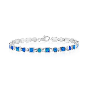Opalata Sterling Silver Blue Inlay Opal Squares and Circles Link Bracelet - Blue - 7 Inch - 1 of 3