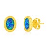 Opalata Sterling Silver, Oval Blue Opal Necklace & Earrings Set - Gold Plated - Blue - 16+2 Inch