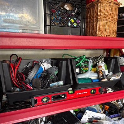 Absolutely love the functionality of this bin. I currently have two that I use in our garage. The ease of being able to access the items in the bin is great! They are sturdy and don’t move. Perfect for garage organization!