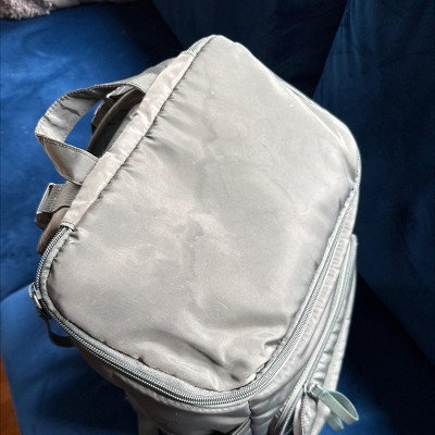 Eh. This could be an awesome diaper backpack but it just isn’t sadly :( Cons: -Stains HORRIBLY. See my pics. Those stains are just WATER and the bag looks so gross after just one week of use -VERY hard to zip main compartment up one handed which is annoying -Strap adjuster placement on the straps make them slide to the loosest setting when putting the backpack on, so you are constantly readjusting the strap size Pros: -Organizational pockets on the inside are great -Handy travel strap on the inside back panel to slide over your suitcase handle -Stroller hanging buckles are very sturdy All in all, I’m returning it. It looks terrible after using it for a short time and it’s annoying to deal with the straps constantly loosening and hard to zipper one handed.