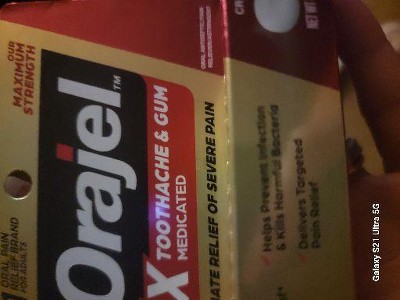 A: Thank you for your question, Gloandrew. This product provides instant relief for severe toothaches and painful gums. The formula combines the power of four active ingredients for fast topical pain relief. If you have any further questions, comments, or concerns, feel free to call/text us at 800-833-9532 or web chat by visiting orajel.com, and clicking on the chat icon. Our team is available to help Monday - Friday, from 9 - 5 Eastern. We'll be glad to help! Please mention your case number: 07294830, when contacting us.