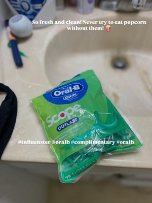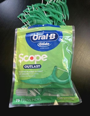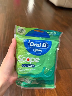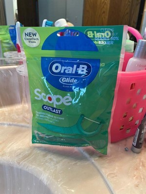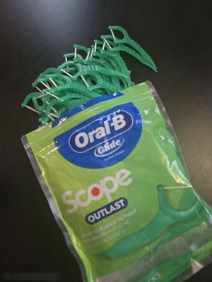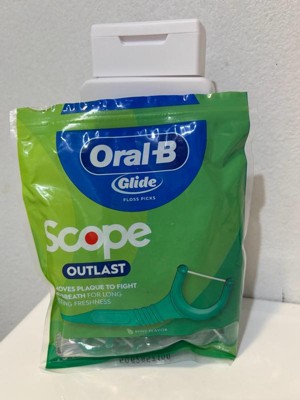 - Slides up to 50% more easily in tight spaces* with the power of Oral-B Glide + the freshness of Scope Outlast flavor in the convenience of a floss pick. *vs. a leading floss pick