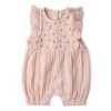 Makemake Organics Organic Embroidered Ruffle Romper - Blush - 0-3M