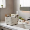 Discover flexible organization with the Organizing Essentials Multipurpose Transform Basket, designed to adapt to your storage needs. This innovative basket easily transforms from a wide, low bin into a tall, compact caddy with a simple rotation of its center hinge. Whether you’re organizing under-sink cleaning supplies, pantry goods, or bathroom essentials, its smooth cream finish and ventilated sides keep your items visible and accessible. Made from durable 90% polypropylene, 5% aluminum, and 5% ABS, this versatile bin blends modern design with everyday function—making it perfect for any room that needs a clean, organized touch.