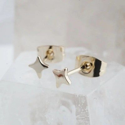 Miniature studs shaped like tiny origami stars - delicate, dimensional, and full of charm. Measuring just 5mm x 4mm, their petite size makes them perfect for everyday wear and effortless stacking. Whether paired with your favorite hoops or styled across multiple piercings, these little stars add a soft, celestial touch to any look.