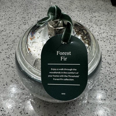 [This review was collected as part of a promotion.] This is actually quite a big candle. I would say that it is about the size of the palm of my hand. It has a nice mirrored glaze affect and resembles a Christmas ornament. Don’t try and lift it from the top though, my piece broke off. The scent is definitely what it says it is - it smells like you’re in a forest. The scent is also quite strong. I just left it uncovered in my bathroom and it has the faint smell of a forest and I love it!
