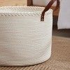 Ornavo Home 21" Large Round Cotton Rope Storage Basket Laundry Hamper with Faux Leather Handles