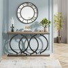 - Artful Industrial Design: Features a striking O-shaped geometric metal frame paired with a 1.57" thick vintage grey wood top, creating a captivating focal point of rustic elegance for your entryway or living room.