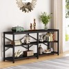 Anchor your space with this statement-making 70.9-inch console table. Its industrial X-back metal frame and three open shelves combine rustic charm with modern function. Perfect as a spacious sofa table, generous entryway organizer, or sleek TV stand, offering both display and substantial storage.