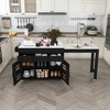 74.8" Black Mobile Kitchen Island with Extendable TableThis versatile kitchen cart features a sleek marble veneer top and built-in power outlet for added convenience. Equipped with 3 drawers and a cabinet for ample storage, its extendable dining table expands usable space, while rolling wheels allow easy mobility. Perfect for dining rooms and kitchens, blending functionality with modern style.