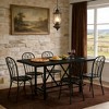 • This industrial-style kitchen table blends modern design with rustic details, making it an eye-catching centerpiece. The sleek metal footrest enhances the aesthetic while ensuring comfortable seating.