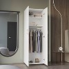 Organize your bedroom with this modern double door armoire! Features 2 spacious interior shelves and a convenient hanging rod to keep clothes neatly stored. With easy assembly and eco-friendly FSC certified materials, this versatile closet organizer blends seamlessly with any decor. Perfect for maximizing storage in style!