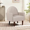 Sink into soft, sculptural comfort. This modern shell-shaped armchair features a cozy cream-apricot PU leather seat on sturdy wooden legs. Its curved backrest provides gentle support, creating a perfect reading nook in your living room, balcony, or study. Easy-clean surface and a 300 lbs weight capacity. Effortless assembly.