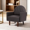 Embrace vintage serenity. This dark brown shell-shaped armchair combines rich PU leather with solid wood legs. Its deep, curved design offers immersive comfort for reading or relaxing in your living room, study, or balcony. Easy to clean and supports up to 300 lbs. Effortless assembly brings timeless elegance to your space.