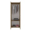 It comes equipped with a handy hanging rod for your clothes and a spacious shelf, perfect for stowing folded items, shoes, or bags—keeping your essentials organized and within reach. Ideal for smaller spaces, this piece doesn’t compromise on storage capacity, offering ample room for all your everyday items.