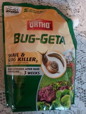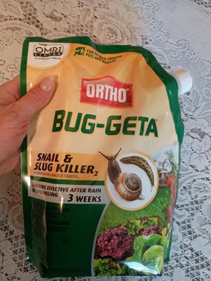 Kill snails and slugs with the easy-to-use Ortho Bug-Geta Snail and Slug Killer. No mixing or spraying required; simply spread the indicated amount of product around your vegetables, fruit trees, citrus, berries, ornamentals, shrubs, flowers, trees, or gardens, and control snail and slugs for up to 3 weeks. Remains effective even after rainfall. And, you can use Ortho Bug-Geta Snail and Slug Killer around pets and wildlife.