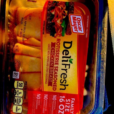 Skip the deli line and enjoy the sliced chicken breast you know, love and trust. Oscar Mayer Deli Fresh Chipotle Seasoned Chicken Breast delivers the flavorful slices you crave, coated with chipotle and red chili peppers, paprika and other seasonings. Chicken breast slices are fully cooked and ready to enjoy. Made with no artificial preservatives and no nitrites or nitrates added, each serving of chipotle seasoned chicken breast slices contains 9 grams of protein (see ingredient line for ingredients to support quality). Our Peel and Reseal feature ensures maximum freshness, thanks to our fully resealable lid that keeps every slice as delicious as the first. Whether you're stacking a sandwich, adding protein to your salad, crafting a charcuterie board or snacking straight from the fridge, you can count on the resealable packaging to lock in freshness after every use. Each 8-ounce pack of sliced chicken breast contains 4 servings. Keep it Oscar and enjoy deli-style chicken breast at home.