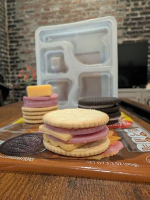 - One 3.2 oz tray of Lunchables Ham & American Cheese Cracker Stackers Snack Kit with Chocolate Creme Sandwich Cookies