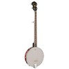 Constructed with a nato neck and dot inlays, the banjo offers stable playability and clear fretboard visibility, supporting accurate fingering for beginners and intermediate musicians