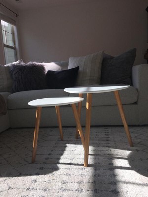 Very pleased with these lightweight, modern looking tables. Fit well with my farmhouse, coastal/cottage look I have in my living room. And it was an added bonus that they were easy to assemble.