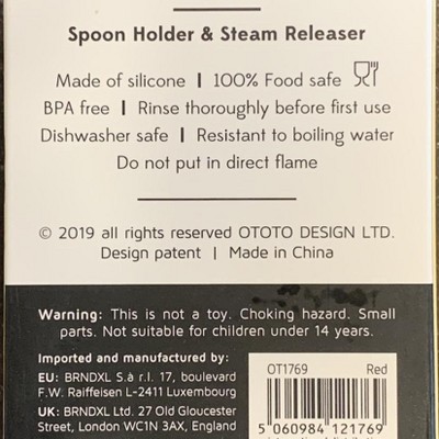 The OTOTO Red Spoon Holder & Steam Releaser is the cutest thing you didn't even know you needed. I've had this guy for a week and used him at every meal. He's made of 100% BPA free, food safe silicone that's dishwasher safe and resistant to boiling water. His head spins so when using the spoon rest feature your stovetop stays clean from drips because the go right back into the pot. When used as a steam releaser he keeps glass lids from clattering on the pan. Most of all just seeing him guarding my food makes me happy. I did receive this product for free in exchange for my honest review which I have freely provided. All the cooks in my family will find Red included with their presents this year! He's indispensable and multipurpose.