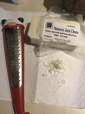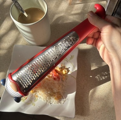 This gnome zoster/grater does the job of zesting and grating just fine. I did some very soft Monterey Jack cheese and it shred it very finely. Grater is made well, is dishwasher safe, has a protective cover and is very cute, especially for gnome lovers. I'm more of a cheese lover so looks on a grater don't matter to me. With all that said, this grater is hard for me to grip, to me the top is just strangely shaped to be able to hold on to it well. I got this product for free in exchange for my honest review.