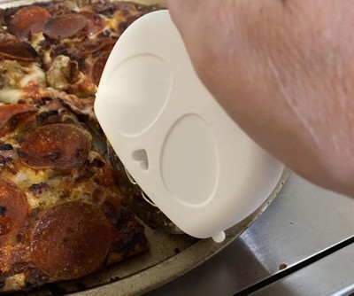 - Nonstick pizza cutter wheel glides through thick crusts easily.