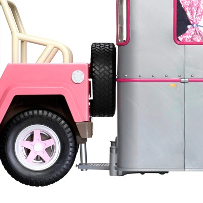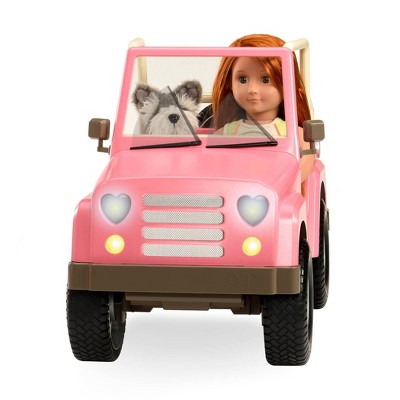 Search the coast and find the perfect beach with the Our Generation OG Off-Roader 4x4, a stylish and rugged vehicle for 18-inch dolls with tons of amazing features! Road trips are more fun with a great soundtrack - use the built-in Bluetooth speakers to play your favorite songs through the Off-Roader's speakers! Working windshield wipers, headlights, brake lights, turn signals, and more provide realistic play in the daytime and while cruising with your dolls after dark. The included surfboard can be mounted on a removable roof rack, and the trailer hitch folds down so you can connect to the Our Generation RV Camper or the Mane Attraction Horse Trailer! Fully assembled and ready to play with, this non-motorized vehicle comfortably fits two 18-inch dolls and has a backseat area for bringing your Pup on adventures! The dolls in the pictures are Coral and Noa. (Dolls, pups, and outfits sold separately, available at Target. Compatible with American Girl dolls.)