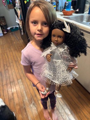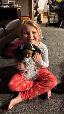 Purchased this doll as a Christmas gift for my daughter’s friend. They fawned and swooned over this doll and the exquisite details! Equivalent or even better than the actual American Girl dolls. The hair texture is everything, the dress and cape details, the shoes, and the glitter eyeshadow. Now my 7yo daughter insists she wants one for Christmas as well for herself. Angelica is absolutely perfect and a stellar value!