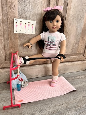 While this set is so cute, it definitely didn’t meet the expectations that I have for OG products. Normally, I love OG. The shoes do NOT fit American girl dolls even though in the description it says it’s compatible. The bar is so cheaply made and is not even the right height for the doll to lean on. The leg warmers do not have any stretch to them and I wasn’t able to put them on the ydoll’s legs. To add to the disappointment from this set, glitter from the tube got everywhere.