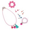 - Includes: doll, outfit, headband, (6) earrings, (2) bracelets, necklace, and jewelry box