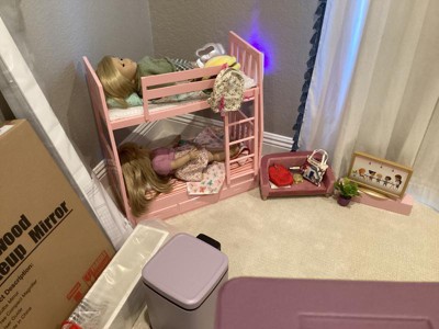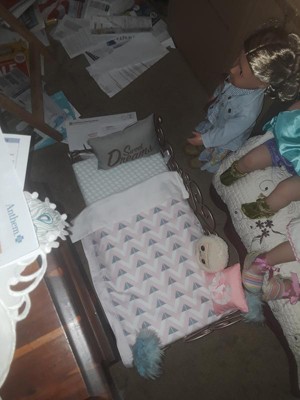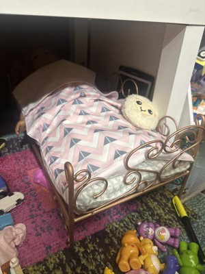 This doll bed is a delightful addition to any child's playtime, featuring a sturdy metal frame and charming accessories that enhance the doll experience. Guests appreciate its quality and realistic design, making it a perfect gift for birthdays or holidays. The bed fits American Girl dolls and comes with cute pillows and a blanket, ensuring hours of imaginative play. Overall, it is a well-loved product that brings joy to children and parents alike.