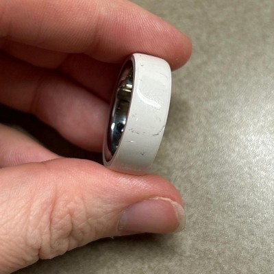 Love the ring and what it does but do not recommend the ceramic. Been wearing less than a week and it’s already scratched up. I’m a nurse and constantly opening doors with metal handles. This is a ring for very very light work.