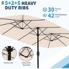 - 【STURDY & DURABLE STRUCTURE】Constructed with 5+2+5 powder-coated steel ribs, the 15ft rectangular patio umbrella with base provides excellent support and rust resistance for outdoor use.