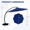 350LBS BASE INCLUDED FOR STABILITY - No extra purchases are needed this large offset umbrella outdoor patio comes with a base included, ensuring stability and support right out of the box. To maximize stability, fill the base with 300 lbs of sand first, then wet it with water in sequence 360¡ã ROTATION & INFINITE TILT FOR FULL SUN CONTROL - Maximize shade coverage with smooth 360¡ã rotation and precise infinite tilt adjustment. Easily block sunlight from any angle whether on a pool deck, backyard, or garden, this heavy-duty outdoor essential provides reliable shade. It features a unique pedal design that allows 360¡ã rotation from the patio umbrella base: simply twist the pole to find the perfect position at any time of day SUPERIOR PATIO UMBRELLA FABRIC - The canopy of this offset patio umbrella with base included is made from 220g polyester fabric with a PA coating, featuring vents at the top for improved air circulation. This high quality craftsmanship ensures excellent water repellency, fade resistance, ventilation, and sun protection, effectively blocking strong harmful outdoor rays USE AND MAINTENANCE - To keep your outdoor cantilever umbrella with base in optimal condition and extend its service life, please close it and secure it with the strap during extreme weather (such as strong winds) or when not in use. This well designed heavy-duty patio umbrella is perfect for various outdoor spaces, including patios, poolside areas, backyards, and more PATIO UMBRELLA WITH STURDY BASE - An aluminum frame with enhanced thickness provides your patio umbrella cantilever with a strong, stable structure that withstands various weather conditions. The powder coating offers superior corrosion resistance and wear protection. Built with a heavy-duty, rust-proof aluminum pole and 8 reinforced ribs, this cantilever umbrella is designed for long-lasting durability